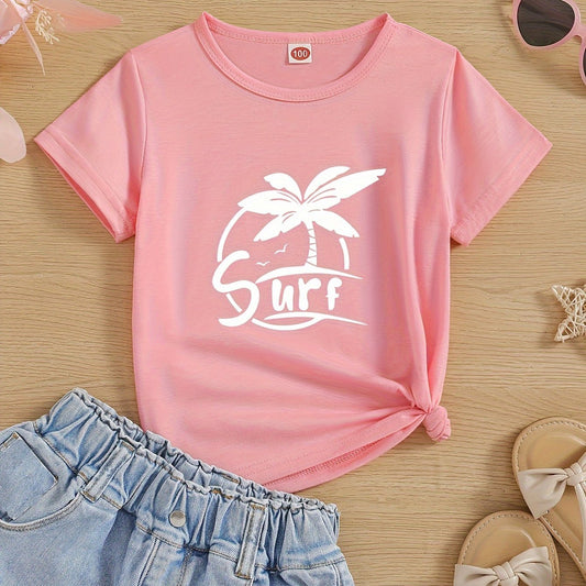 Coconut Tree Surf Print T-Shirt - Kids' Summer Casual Crew Neck Tee