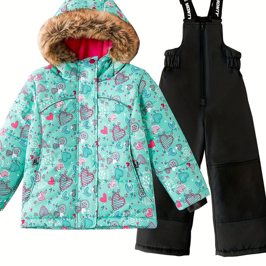 Colorful Ski Suit Set - Hooded Jacket & Thermal Jumpsuit for Girls - Winter Vacation Essential