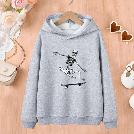 Fashion Girls Skull Man Skateboard Print Comfortable Casual Hooded Sweatshirt, Youth Kids Hoodie Tops