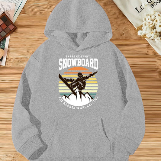 Girls Snowboard Graphic Hoodie - Trendy Long Sleeve Sweatshirt for Kids
