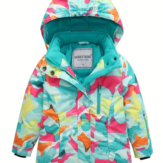 Girls Winter Ski Jacket - Hooded, Zip Front, Camo Pattern - Trendy & Warm - Polyester - Sports & Skiing - Ages 12 & Under - MV09938