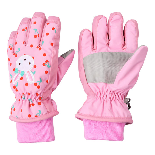 Waterproof Ski Gloves for Kids, Cartoon Rabbit Design - Perfect for Snowboarding, Cycling, and Outdoor Sports - Machine Washable - Ages 6-8 (EH22044)