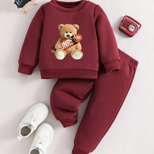 Toddler Girls 2-piece Set Pullover Sweatshirt & Elastic Waist Sweatpants Cartoon Skateboard Bear Print Casual Outfits For Autumn / Spring