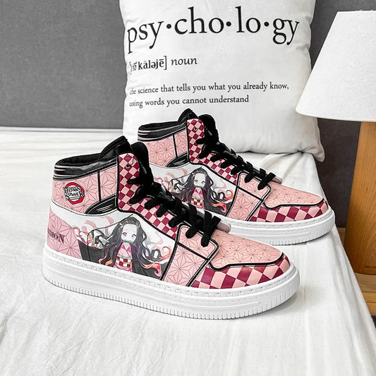 Kamado Nezuko Cosplay Skate Shoes - Demon Slayer Cartoon Game High Gang, Pink Heart Design