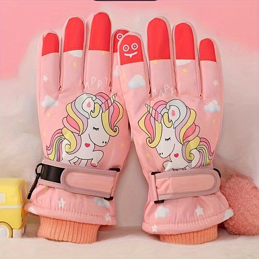 Kids' Cartoon Winter Ski Gloves - Waterproof, Anti-Slip, Warm for Outdoor Activities
